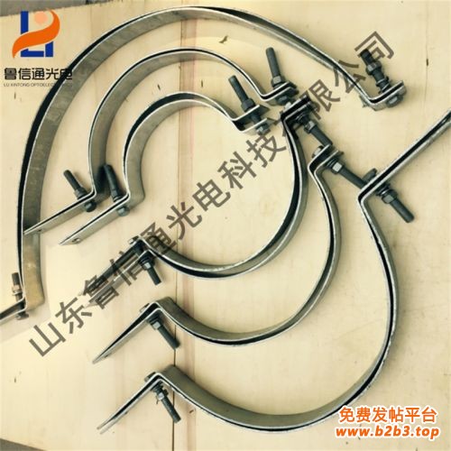 抱箍起联接作用,架设adss自承缆式,耐张线夹,悬垂线夹需要用抱箍固定在水泥杆上