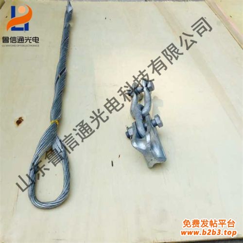 组成:内层护线条预绞丝,中层预绞丝,外层绞丝 ,U型环连接螺栓 。内层护线条预绞丝:材料选用铝包钢丝,与OPPC光缆所有的铝包钢丝为同一材料,预绞丝内壁通过高强度高分子水溶性环保胶粘剂粘有一层金钢沙,以增加与光缆间的摩擦力,预绞丝在生产时被预制成四个子束,便于快速安装,中层、外层耐张线夹预绞丝材料选用;铝包钢丝,预绞在工厂加工时被制成一束并在内壁粘有一层牢固的白刚玉砂,已达到对光缆减小压力的条件下增加耐张的握力,用户根据选用规格表按光缆径。,光缆工作张力(线夹使用张力)选配适合的张力线夹。